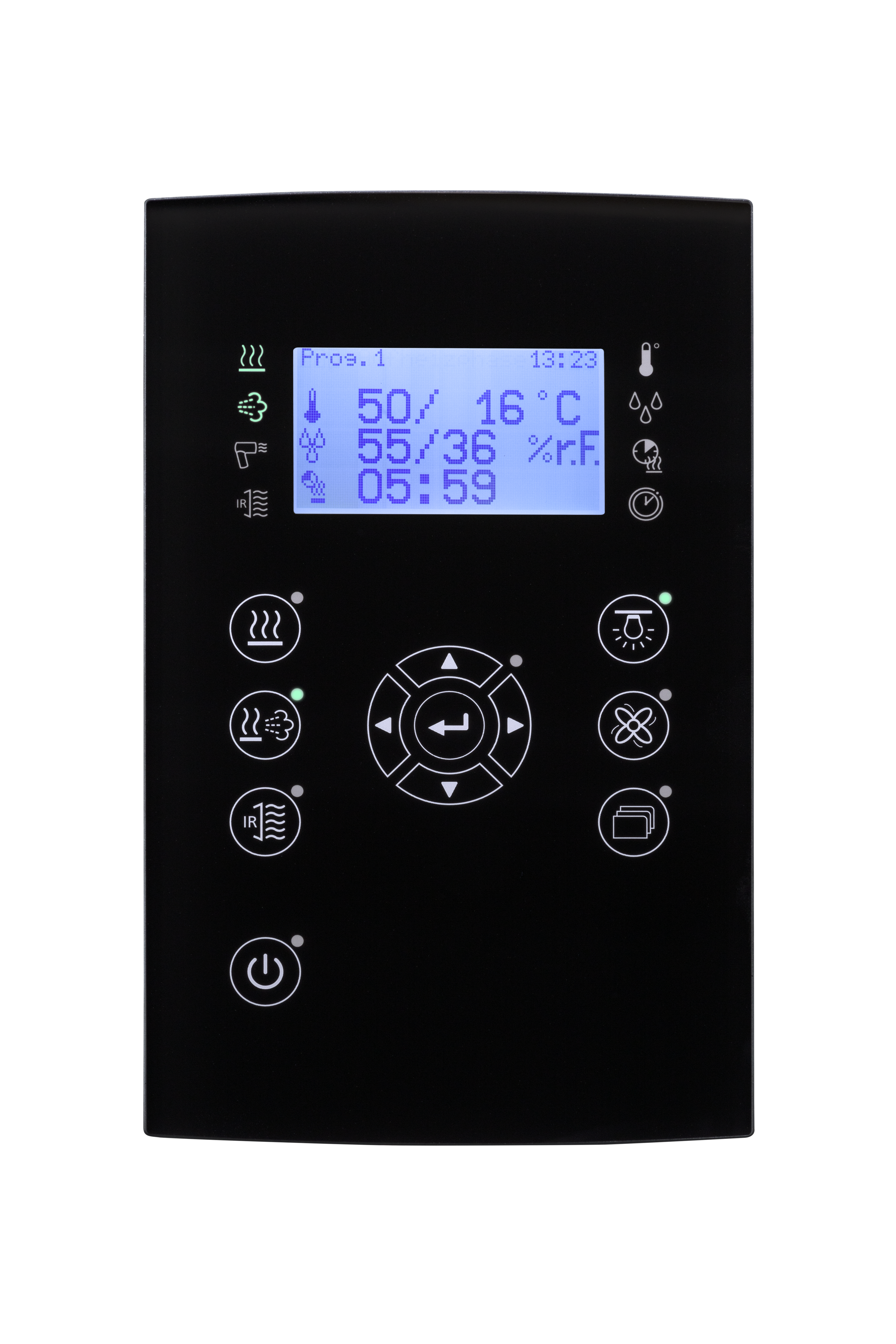 Fasel FCU$400 DESIGN GLASS skirtas elektrinės krosnelės su arba be garo garintuvo (generatoriaus) ir infraraudonųjų pirčių įrangos (šildymo kaitintuvų) valdymui. Gali būti naudojamas saunos arba saunos su garu, arba infraraudonųjų spindulių pirties. Jis išsiskiria elegantišku paprastu dizainu ir lengvai suprantamu valdymu. Įleidžiama, lietimui jautri, stiklinė valdymo panelė (pultelis) montuojama atskirai nuo relių (kontaktorių) bloko. Pultelis montuojamas priepirtyje, relių blokas - techninėje patalpoje. Pultelio apdailos spalva gali būti juoda arba balta. Komplekte yra temperatūros ir gulto davikliai, drėgmės būtina įsigyti atskirai.