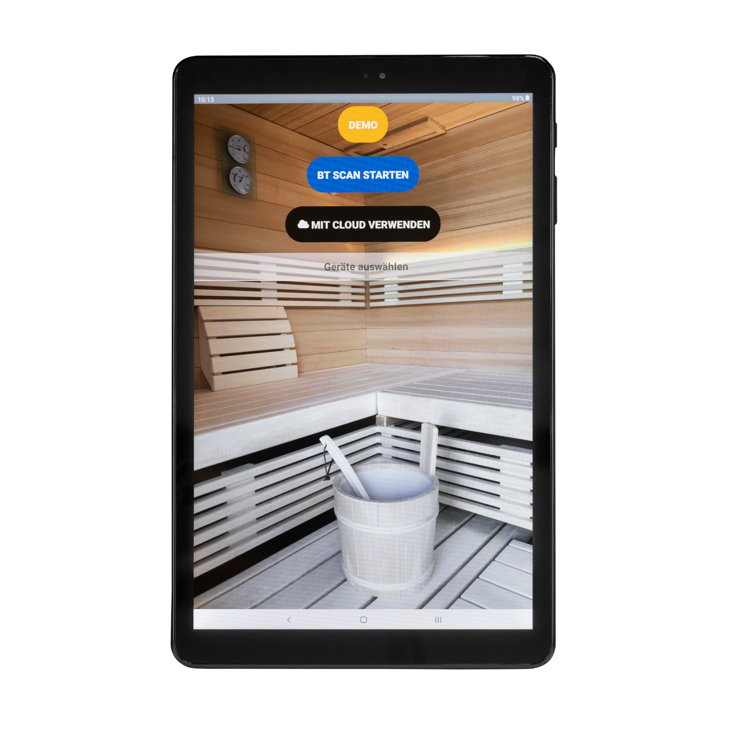 Naudodami programėlę „SaunaControl“, kurią galima parsisiųsti iš "Google Store" ir "Apple store", galite valdyti saunos ir garo generatoriaus valdymo bloką per Bluetooth ryšį, veikiančią maždaug iki 10 metrų atstumu.