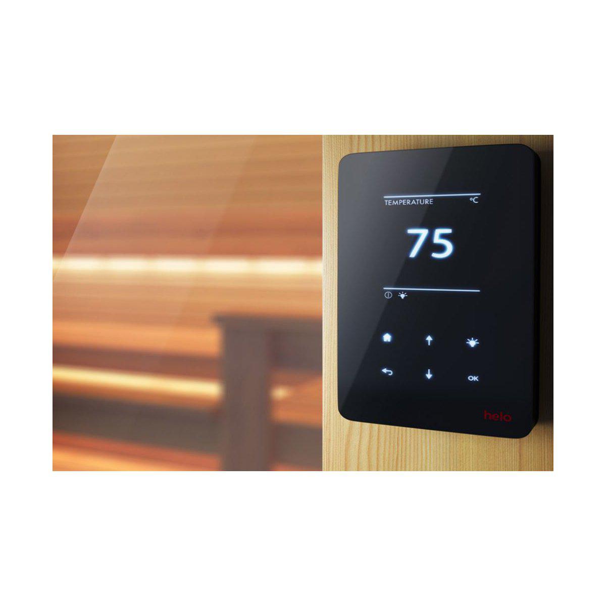 Stilingas T2 pirties valdymo pultas turi daugybę patogių funkcijų. Galite reguliuoti ir stebėti apšvietimą bei temperatūrą. Kad būtų dar patogiau, pirtį galima užprogramuoti iki 23 valandų iš anksto. Galimas kelių kalbų pasirinkimas ir kitos pažangios funkcijos.